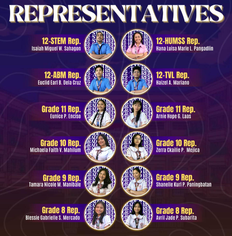 The BAGWIS party consists of hardworking and reliable students who excel in academics and excel in their extracurriculars; keeping a balance with their school and daily lives. Always showing compassion and comprehension, BAGWIS makes sure that every student feels heard and seen through their platforms and advocacies. Building Authentic Governance and leadership through Willpower, Innovation, and Sanguinity."THROUGH THE LIMITS OF SKY, WE AIM HIGH AND FLY."